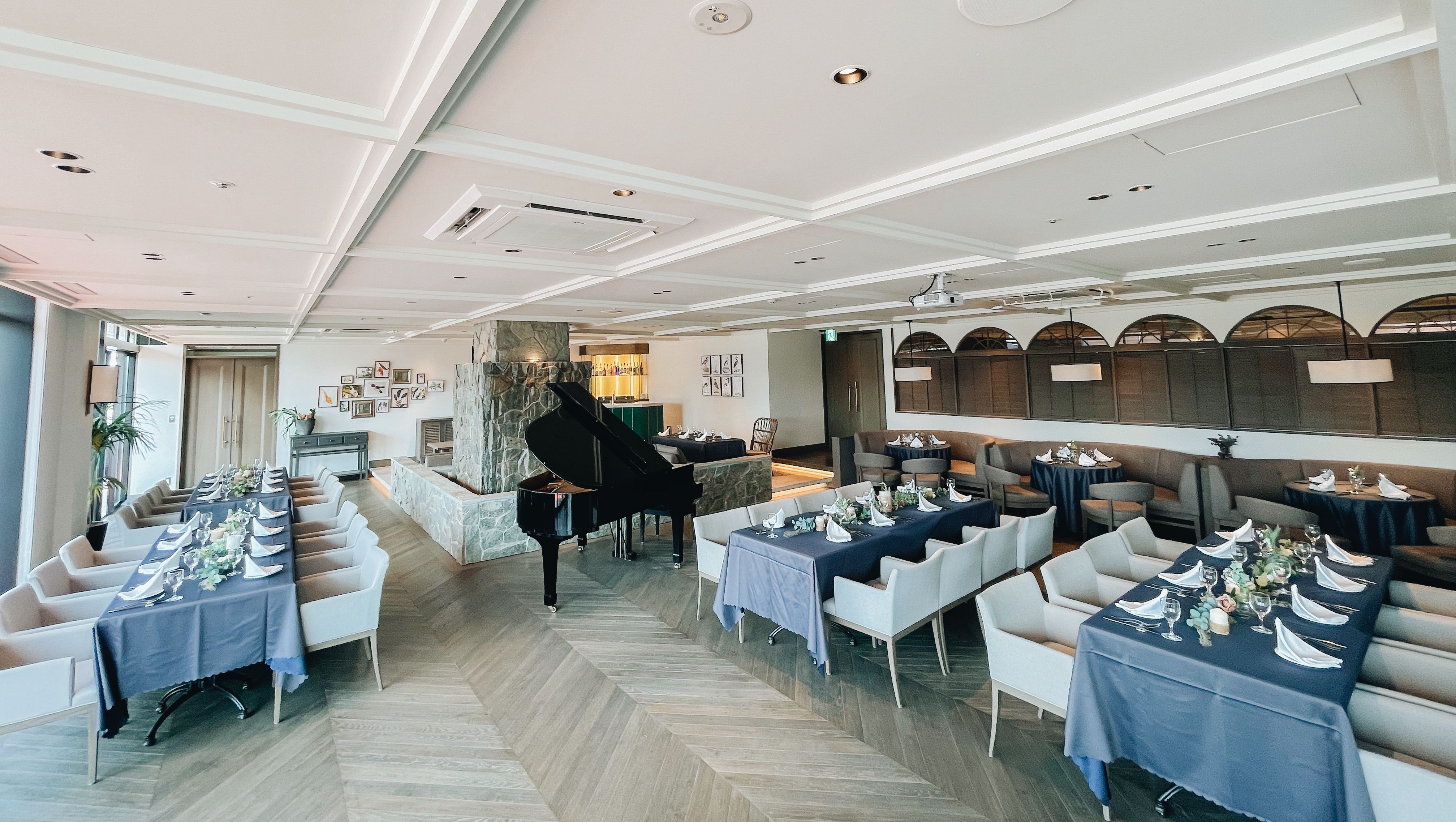 横浜ハンマーヘッド2階に位置し、大きな窓からオーシャンビューが楽しめる空間で